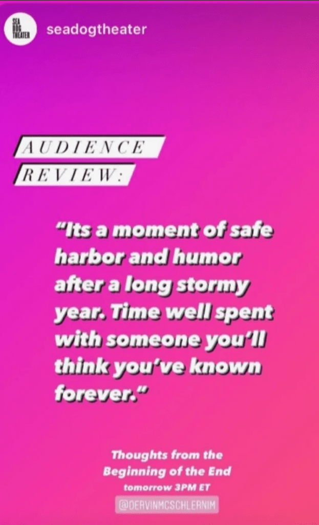 “It is a true ensemble experience with all the actors dancing, with clarinet accompaniment, through a heartfelt script by Devin Burnam that delves into the foibles of a dying existence that knows it’s too late to go back.”